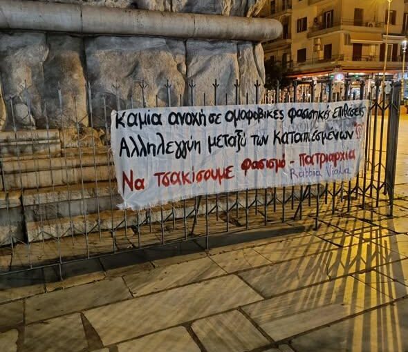 Χθες το βράδυ, Παρασκευή 14.11.2025, αναρτήσαμε πανό στην Καμάρα, ως ένδειξη αλληλεγγύης στα δύο άτομα που δέχτηκαν ομοφοβική επίθεση την προηγούμενη εβδομάδα στην Θεσσαλονίκη.